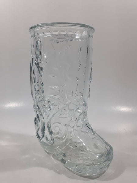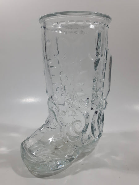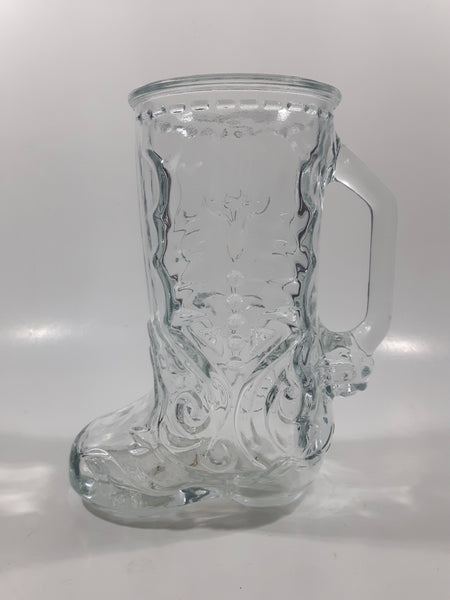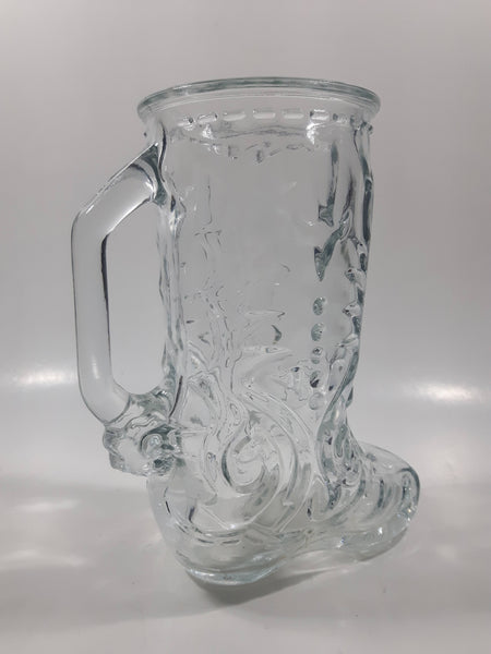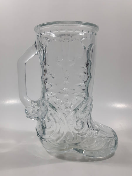 Vintage Libbey of Canada 5 Western Cowboy Boot Shaped 6 1/2" Tall Embossed Glass Mug