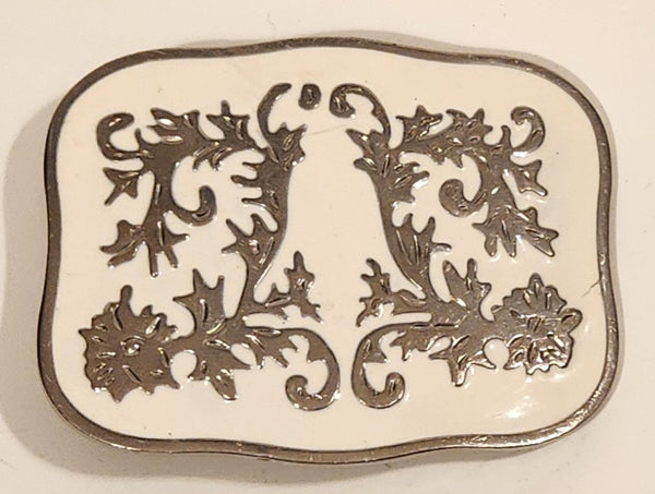 Western Scrollwork Pattern Silver Look White Enamel Metal Belt Buckle