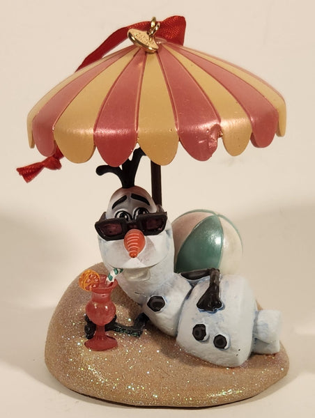 2014 Disney Frozen Olaf Chillin' In The Sunshine On The Beach Drinking Under An Umbrella 5/8" Resin Hanging Figure