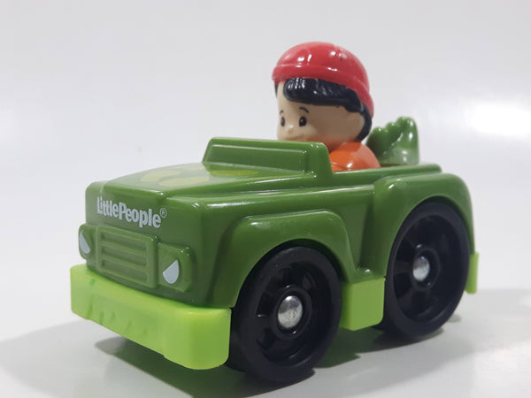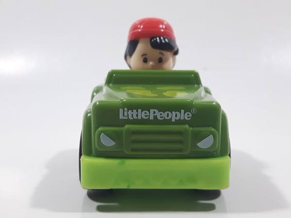 2013 Mattel Fisher Price Little People Wheelies Black Hair Red Cap Boy Orange Clothes Green Gator Plastic Toy Car Vehicle