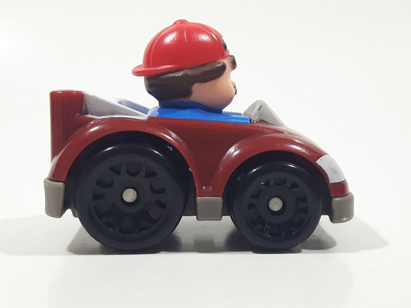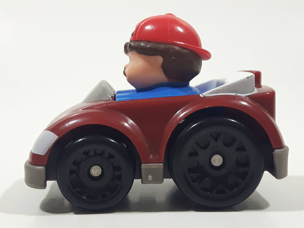 2018 Mattel Fisher Price Little People Red Cap Mustache Man in Dark Red Burgundy Plastic Toy Car Vehicle