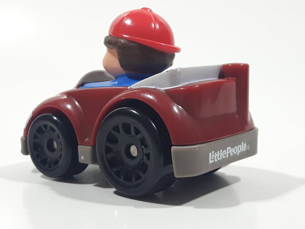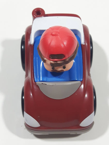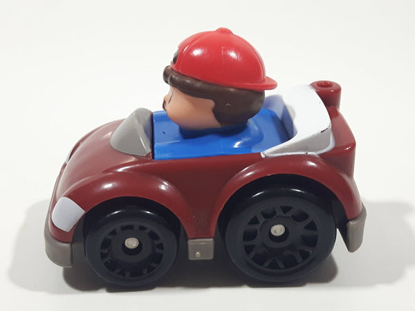 2018 Mattel Fisher Price Little People Red Cap Mustache Man in Dark Red Burgundy Plastic Toy Car Vehicle