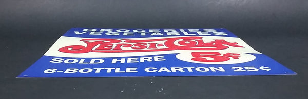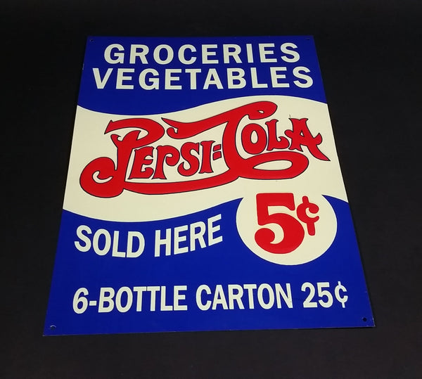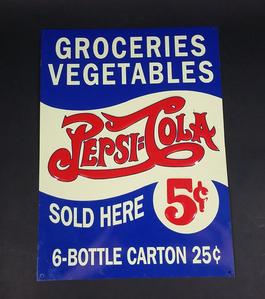 Vintage Style Pepsi-Cola Sold Here 5¢ 6-Bottle Carton 25¢ Groceries Vegetables Embossed Tin Sign - Reproduction