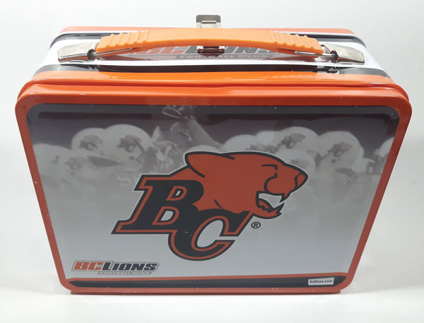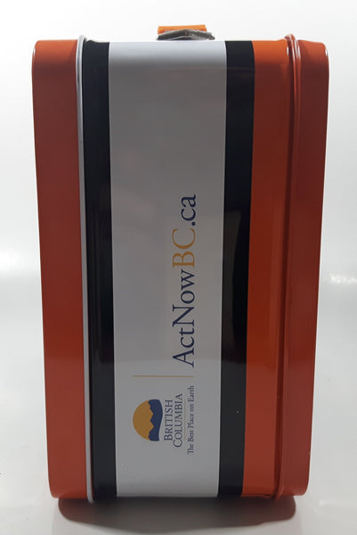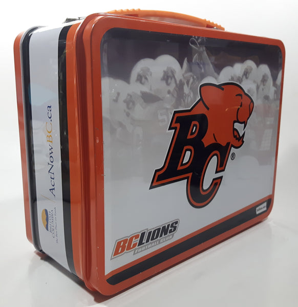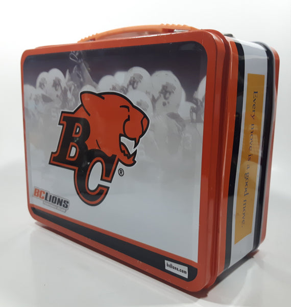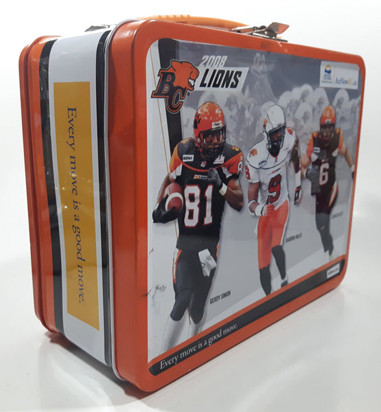 2008 BC Government Act Now CFL BC Lions Football Team "Every Move Is A Good Move" Orange and White Metal Lunch Box