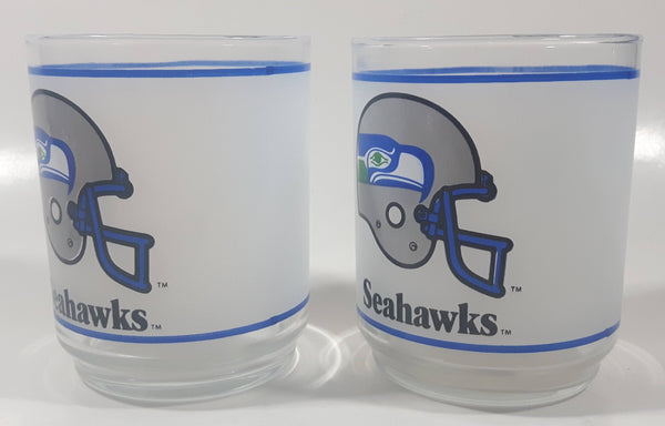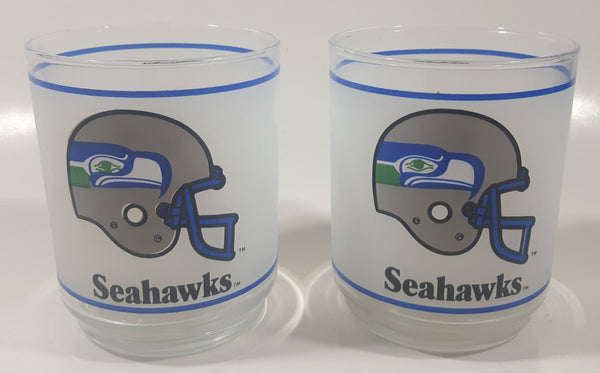 Mobil Seattle Seahawks NFL Football Team 4" Tall Frosted Glass Cups Set of 2
