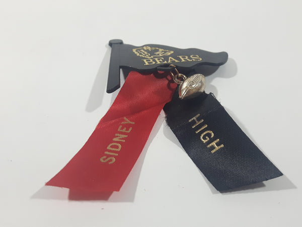 Sidney High Bears Football Team Plastic Flag Metal Charm with Red and Black Ribbons