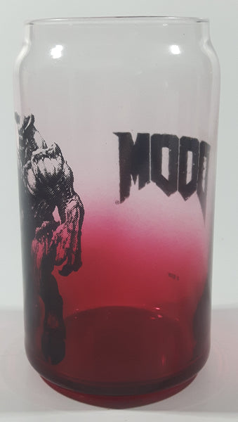 Doom Computer and Video Game Can Shaped Red and Clear 5 1/4" Tall Glass Cup
