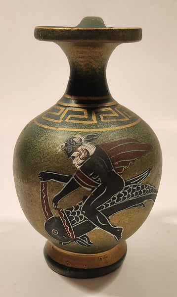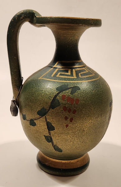 Handmade In Greece Terra Cotta Pottery Wine Jug 5" Tall