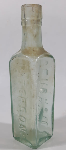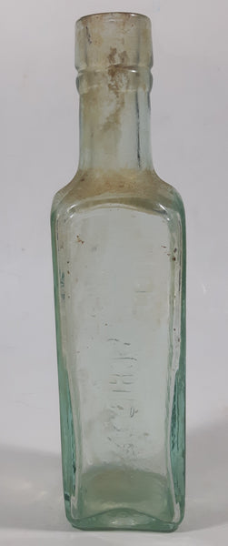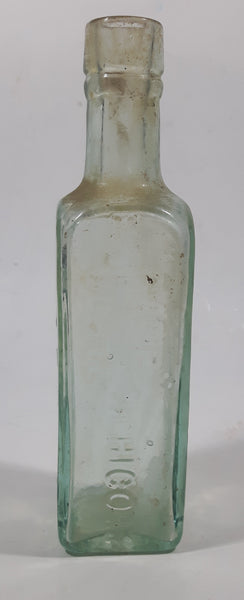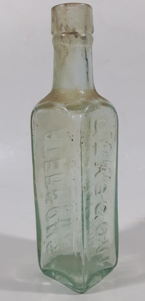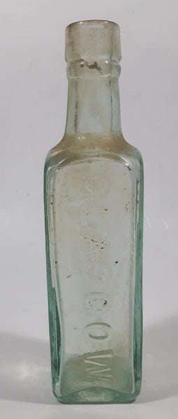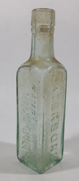 Antique 1880s Paterson's Glasgow Camp Coffee & Chicor 6 5/8" Tall Embossed Lettering Aqua Glass Bottle