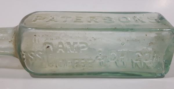 Antique 1880s Paterson's Glasgow Camp Coffee & Chicor 6 5/8" Tall Embossed Lettering Aqua Glass Bottle