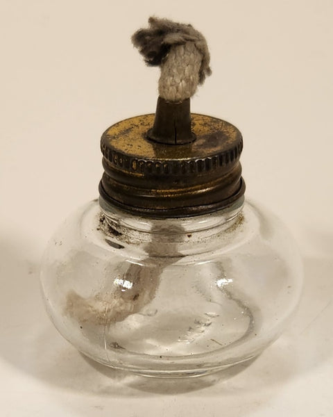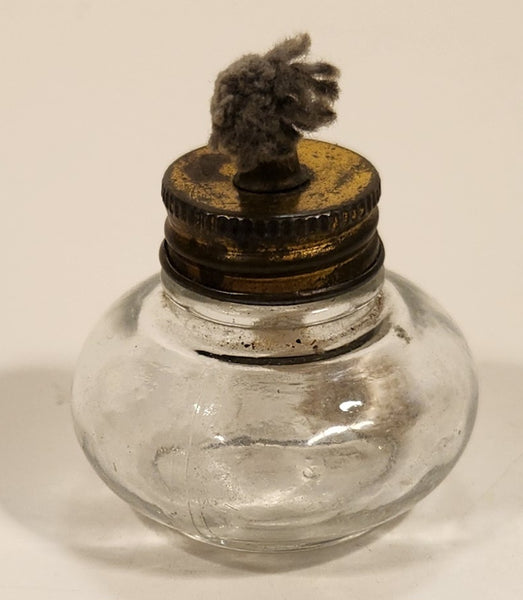 Antique Small Alcohol Lamp with Wick Glass with Metal Screw on Lid Base Marked 2436