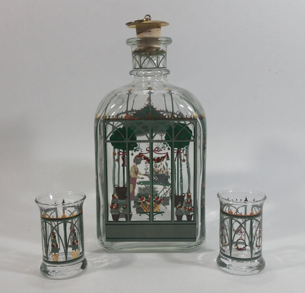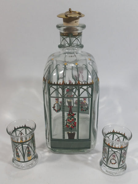 Holmegaard Juleflaske Christmas Themed Clear Glass Decanter Bottle with 2 Glasses