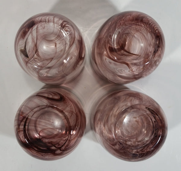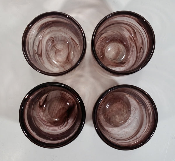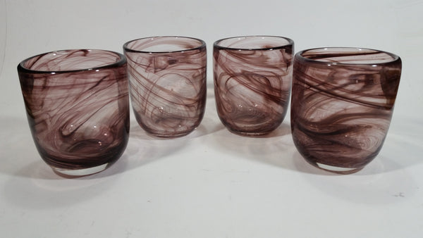 Set of 4 Amethyst Purple Swirl Heavy Art Glass Cups