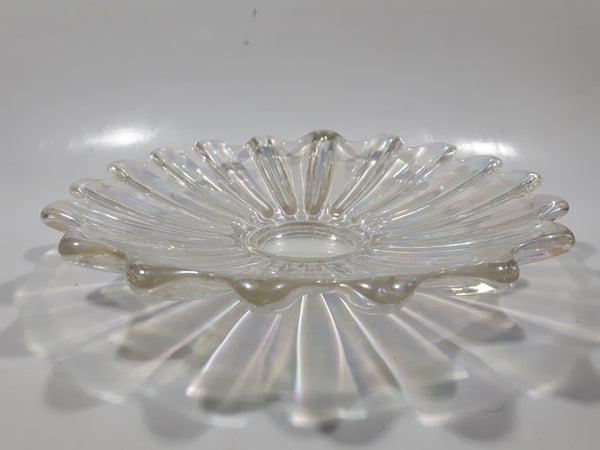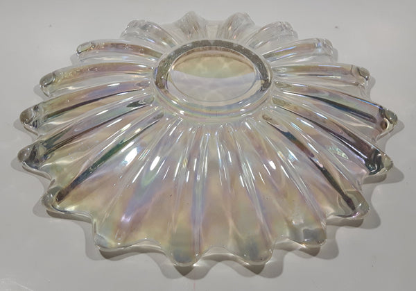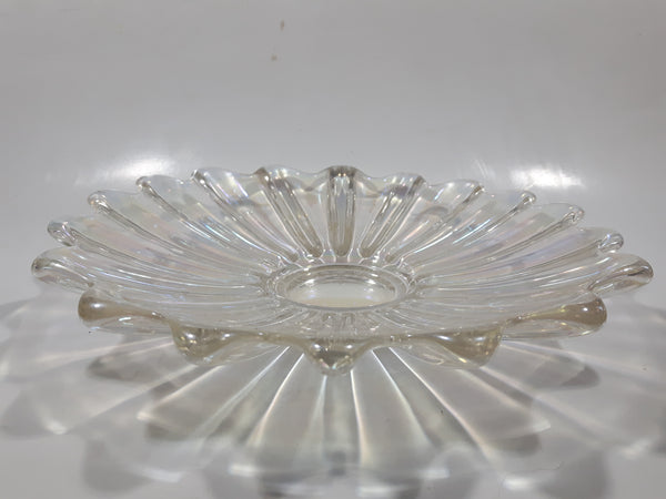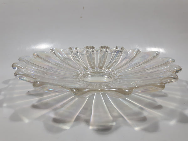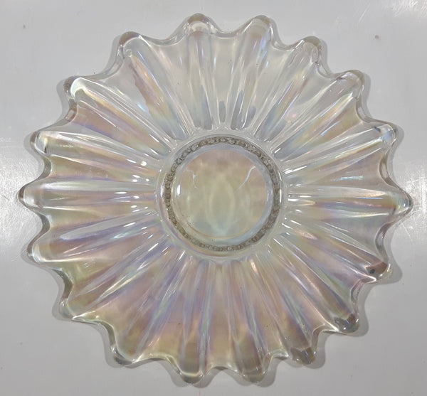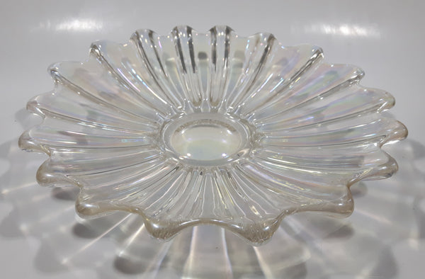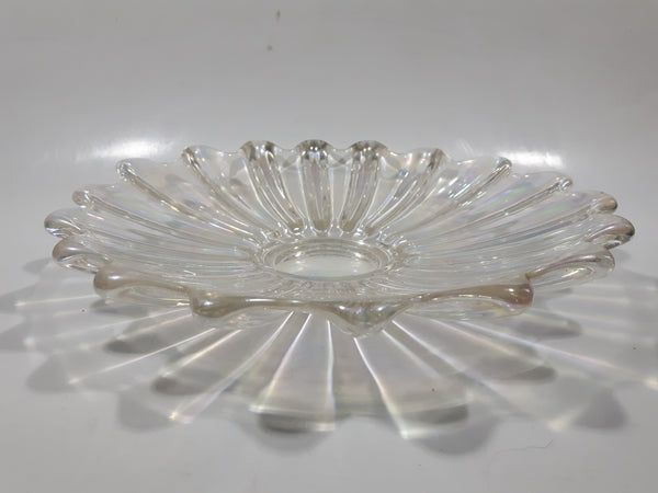 Vintage 1950s Federal Glass Clear Rainbow Iridescent Scalloped Celestial Pattern 9 1/2" Candy Dish Plate