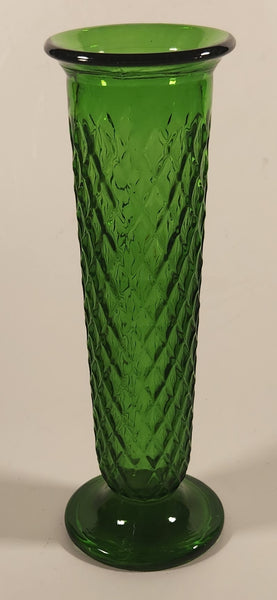 Vintage EO Brody Co. 919 U.S.A. Green Diamond Pattern 8" Glass Bud Vase
