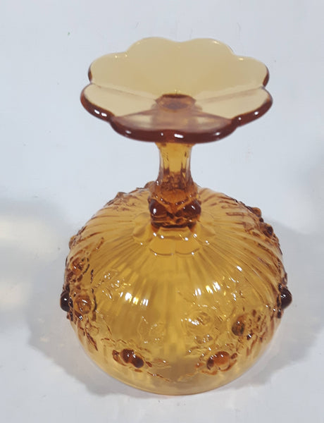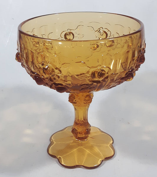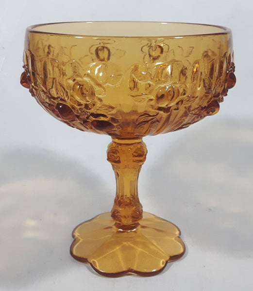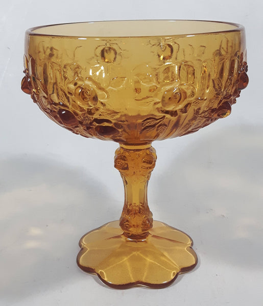 Vintage Fenton Cabbage Rose 6 1/4" Tall Embossed Amber Glass Pedestal Candy Dish