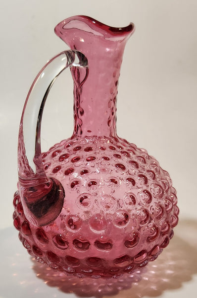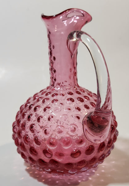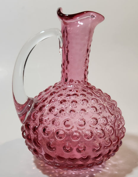 Vintage Fenton Cranberry Glass Hobnail 5 1/4" Tall Cruet Mini Pitcher Jug