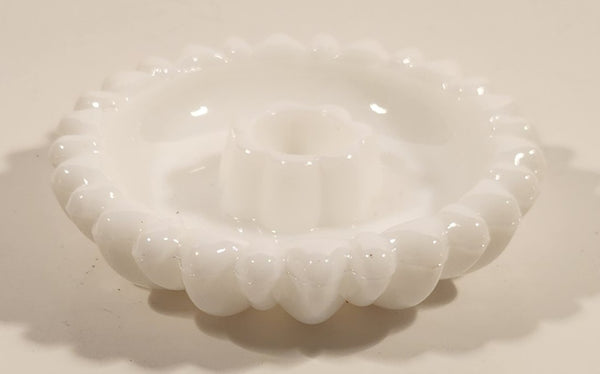 Vintage Hazel Atlas Flower Pattern White Milk Glass Candle Stick Holder