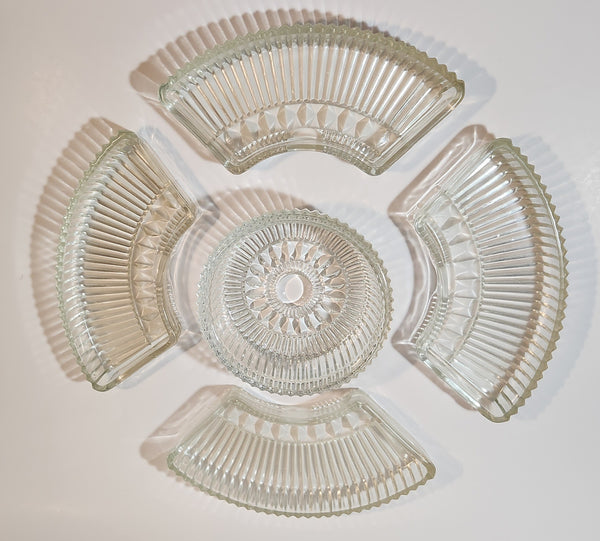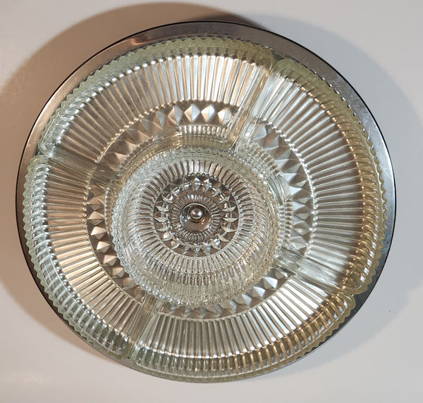 Vintage Kromex Lazy Susan Five Glass Compartment Serving Dish Metal Platter with Lid