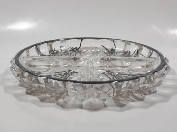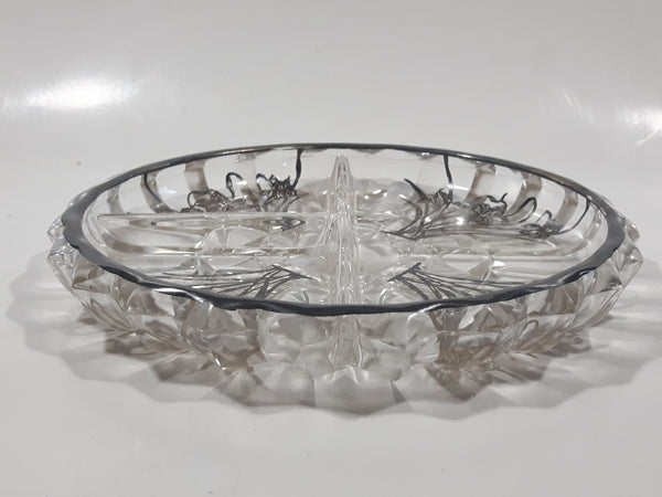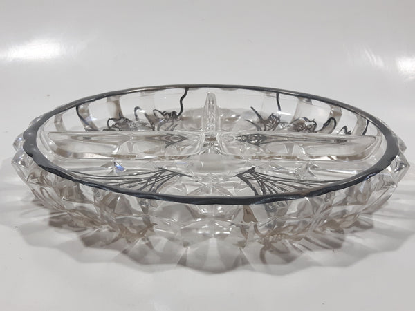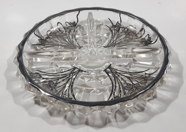 Vintage Lily Of The Valley Flower Pattern Silver Overlay 7" Wide Glass Serving Dish