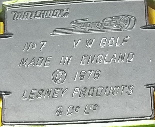 1976 Lesney Products Matchbox Lime Green Superfast No. 7 VW Volkswagen Golf Toy Car