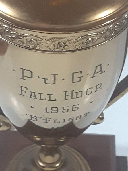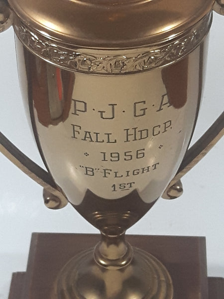 Vintage 1956 P.J.G.A. Fall HDCP "B" Flight 1st Won By Kaz Ochian 17 3/4" Tall Brass Golf Trophy with Wood Base