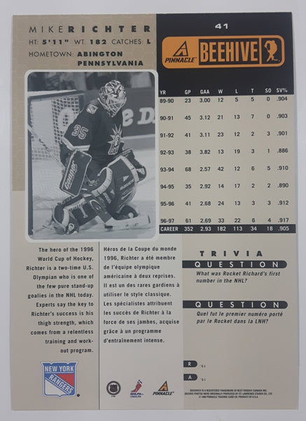 1998 Pinnacle Beehive #41 NHL Mike Richter New York Rangers Goalie Jumbo 5" x 7" Photo Hockey Card