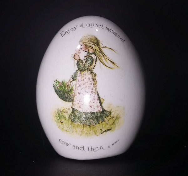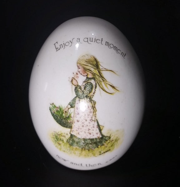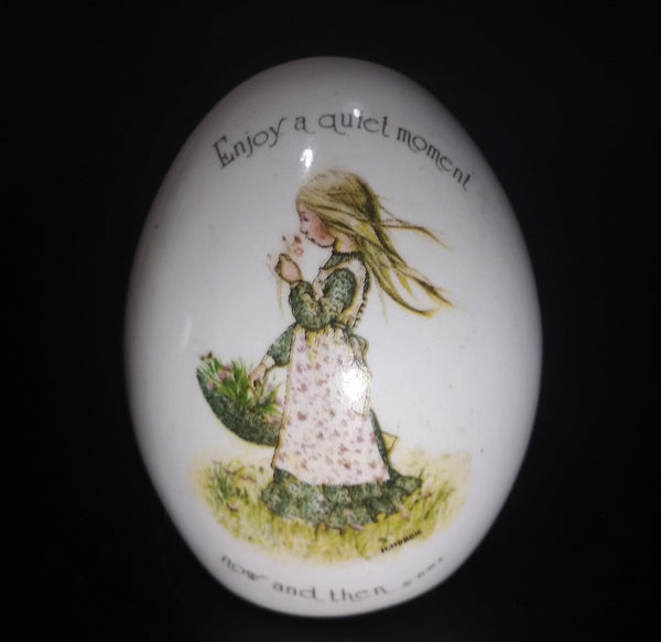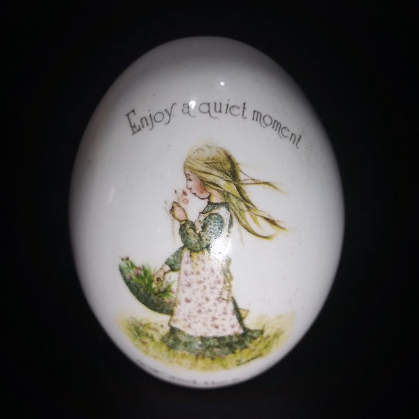 1970s Holly Hobbie "Enjoy a quiet moment now and then" Porcelain Ceramic Egg
