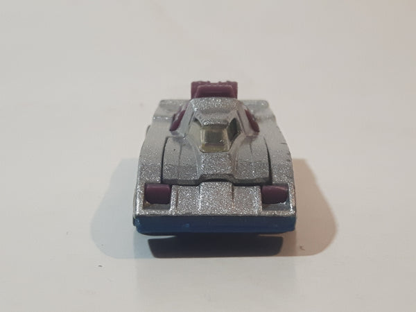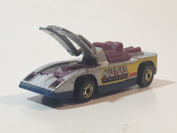 1983 Hot Wheels Snake Mountain Challenge Cannonade Masters Of The Universe Metallic Silver Die Cast Toy Race Car Vehicle with Opening Hood