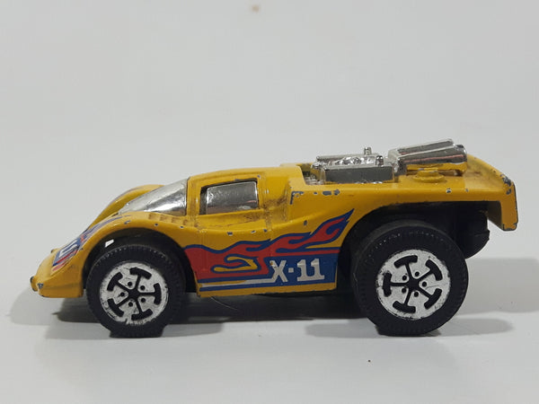 1985 Hot Wheels XV Racer X-11 Yellow Motorized Friction Die Cast Toy Car Vehicle Hong Kong