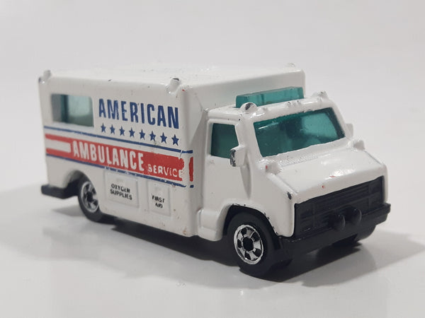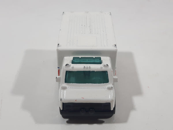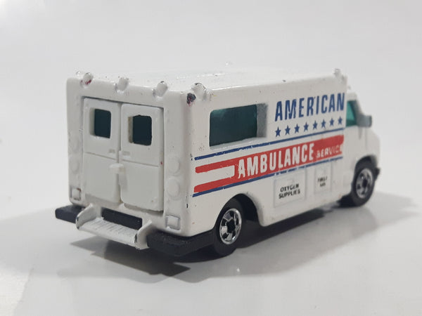 1989 Hot Wheels Workhorses American Ambulance White Die Cast Toy Car Emergency Paramedics Rescue Vehicle with Opening Rear Doors
