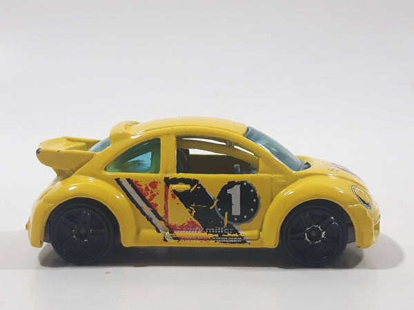 2002 Hot Wheels First Editions Volkswagen New Beetle Cup Yellow Die Cast Toy Car Vehicle