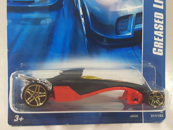 2007 Hot Wheels Stars Greased Lightnin' Black and Red Die Cast Toy Car Vehicle New in Package