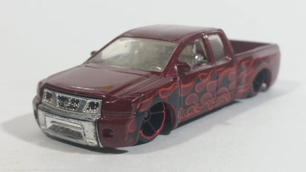 2008 Hot Wheels Nissan Titan Metalflake Burgundy Red Die Cast Toy Lowrider Truck Vehicle