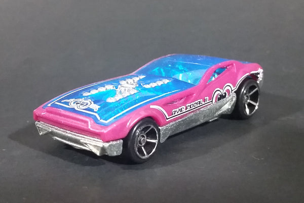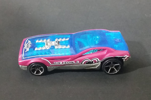 2009 Hot Wheels Bye Focal II Pink Blue Chrome Die Cast Toy Car w/ 5 Spoke Wheels