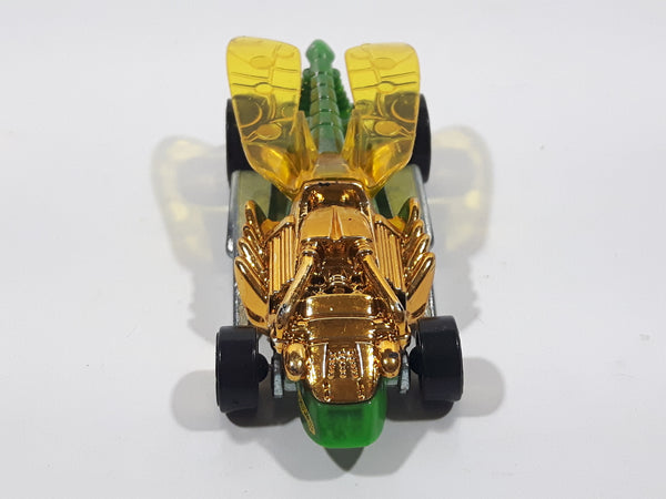 2010 Hot Wheels Insectirides Draggin' Tail Green and Chrome Gold Die Cast Toy Car Vehicle