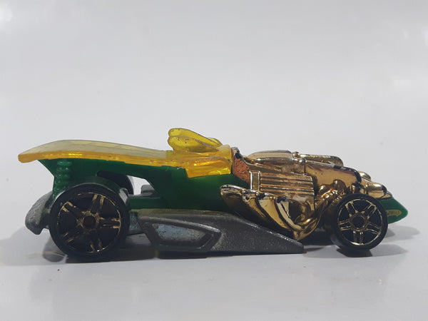 2010 Hot Wheels Insectirides Draggin' Tail Green and Chrome Gold Die Cast Toy Car Vehicle Busted Wing