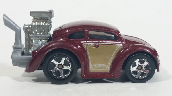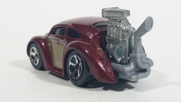 2010 Hot Wheels Volkswagen Beetle (Tooned) Metalflake Dark Red Die Cast Toy Car Vehicle