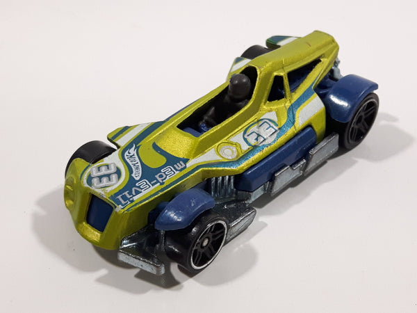 2011 Hot Wheels 4-Lane Elimination Race Med-Evil Red Antifreeze Green and Blue Die Cast Toy Race Car Vehicle