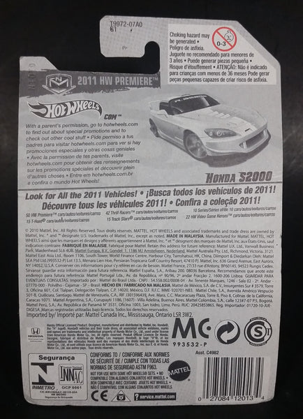 2011 Hot Wheels HW Premiere Honda S2000 Silver Grey Die Cast Toy Car Vehicle - New in Package Sealed