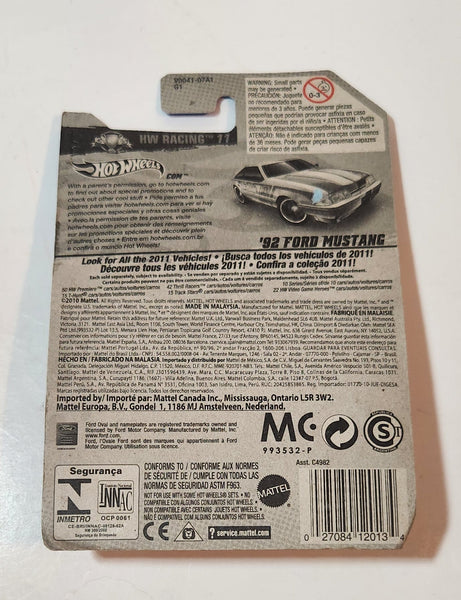 2011 Hot Wheels HW Racing '11 '92 Ford Mustang White Die Cast Toy Car Vehicle New in Package