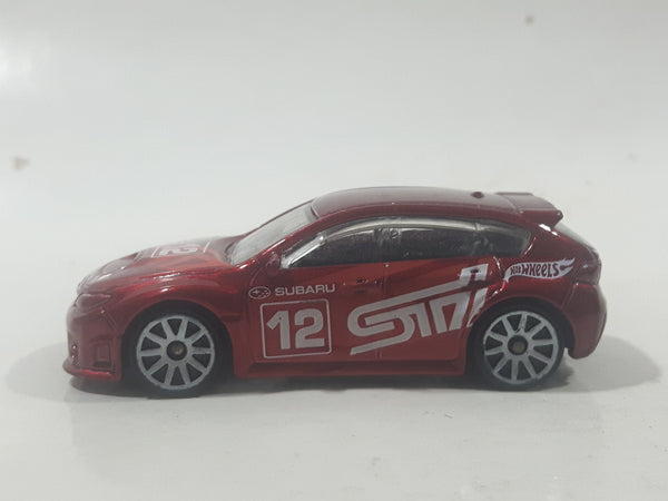 2012 Hot Wheels Subaru WRX STI Red Die Cast Toy Car Vehicle