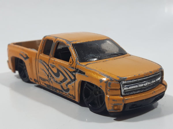 2013 Hot Wheels HW Showroom: HW Hot Trucks Chevy Silverado Metalflake Gold Yellow Die Cast Toy Car Vehicle