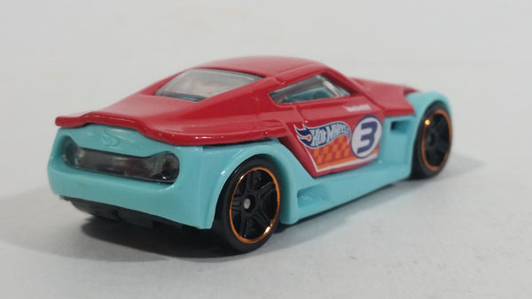 2013 Hot Wheels Track Aces Symbolic Red and Teal Light Blue Die Cast Toy Car Vehicle