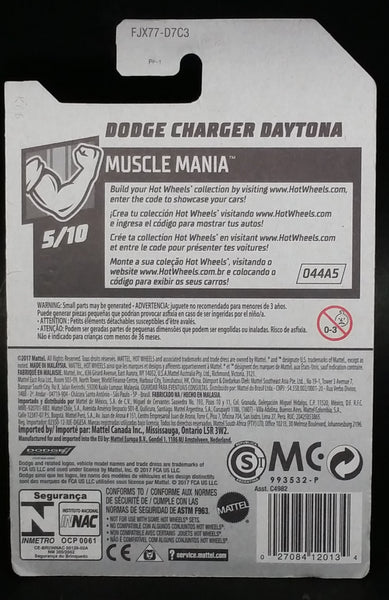 Muscle Mania - 5/10 - K46 - Black White Daytona, Dodge, and Hot Wheels Logo - Clear Tint - Black Interior - Muscle Car 5 Spoke Wheels - Malaysia - Jun Imai - New in Package Sealed