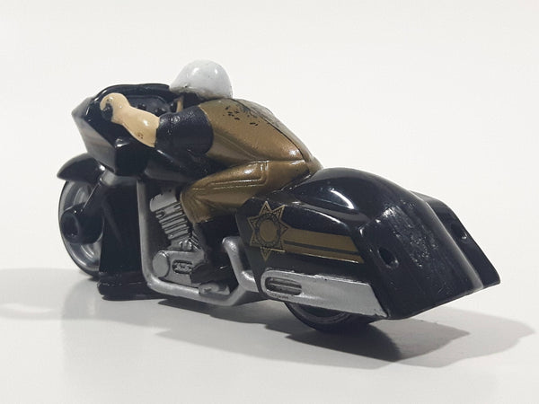 HTF 2010 Hot Wheels Road Roller Police Motor Cycle Chopper Black Die Cast Toy Car Vehicle