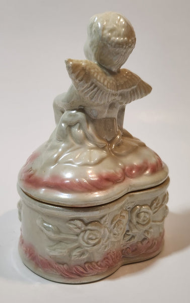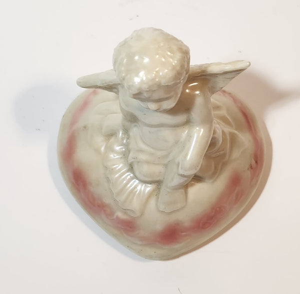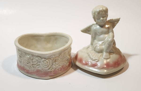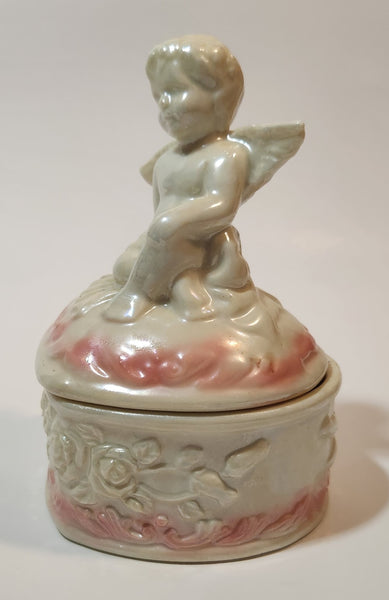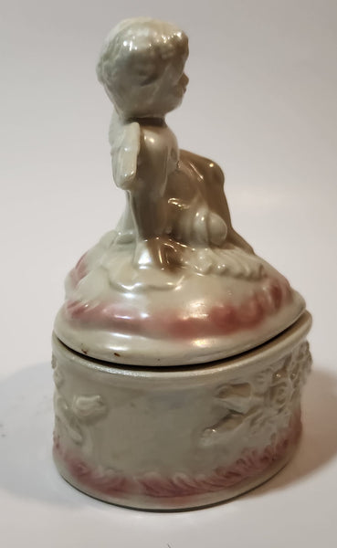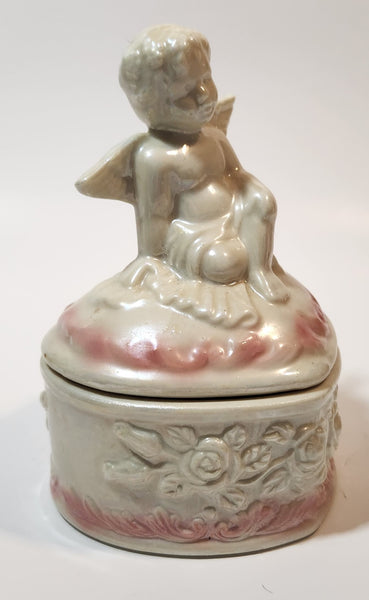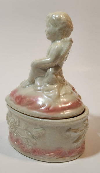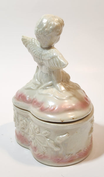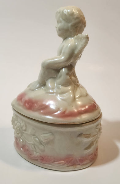 Angel Sitting White Pink 5" Porcelain Trinket Box