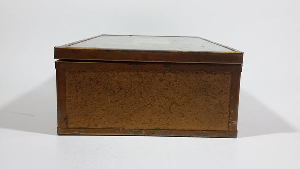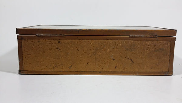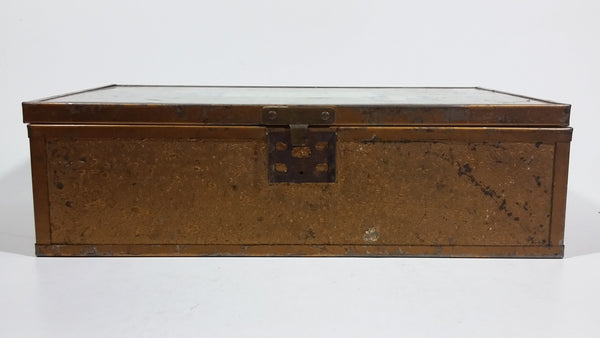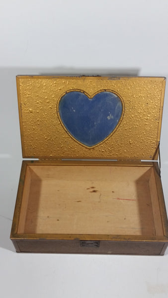 Antique Mother's Day Poem Glass Top Metal Edged Wooden Hinged Jewelry Box with Heart Shaped Mirror Inside
