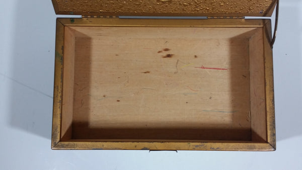 The box originally had a lock on the front but the bottom part of the locking mechanism is no longer there. Very pretty. View photos.
