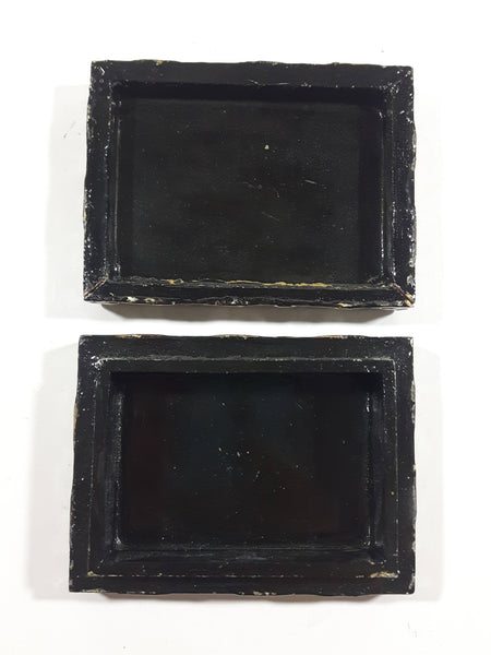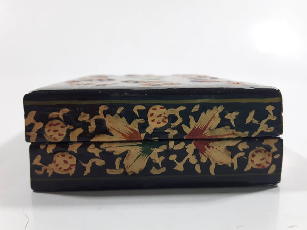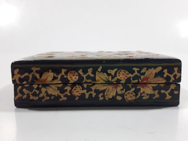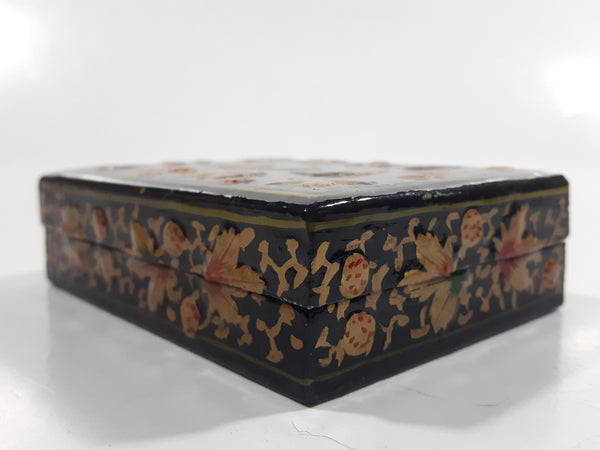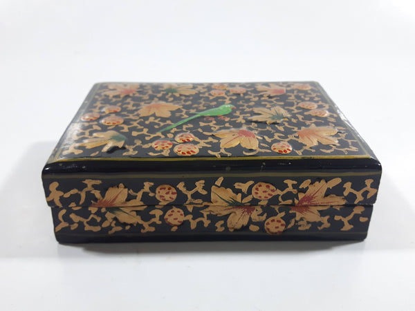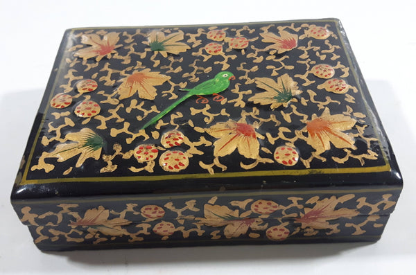 Black Lacquer Raised Parrot Leaves and Berries Small Wood Trinket Box